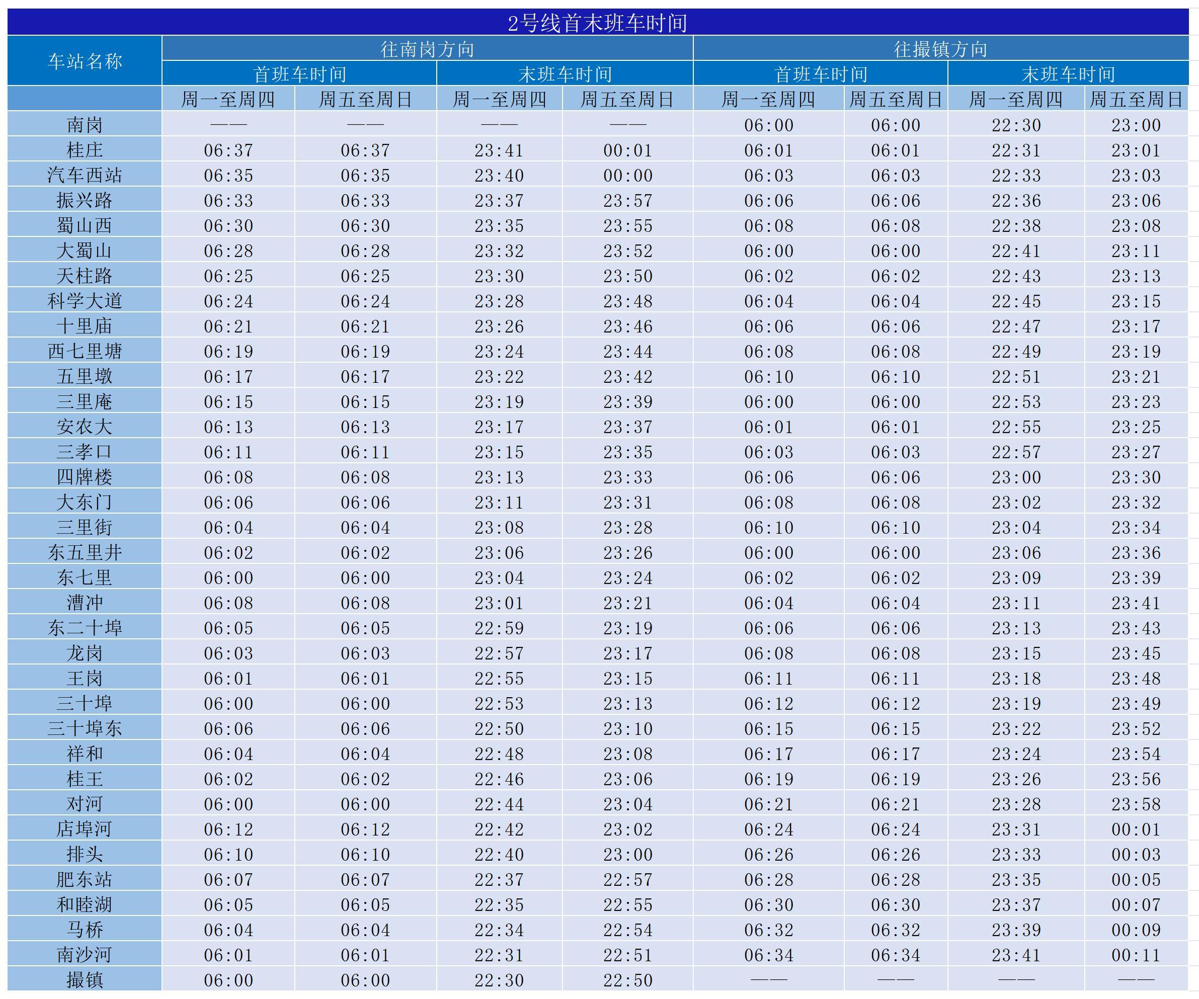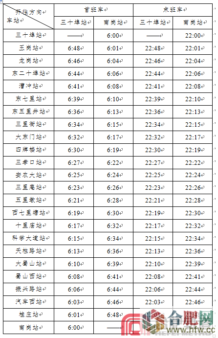 合肥地鐵2號(hào)線 運(yùn)營(yíng)時(shí)刻表