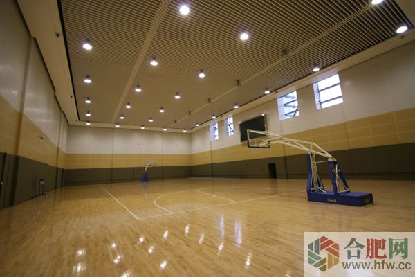 安徽合肥體育中心綜合體育館建筑面積2.6萬㎡,按甲級館設計,館內風速保持在≤1米/秒。首層為比賽現場、熱身場地、全民健身房及輔助用房等設施。包括運動員、裁判、醫療競賽管理用房、貴賓用房、記者工作區及運動器材庫等。二層為觀眾層,設固定坐席5596個,活動坐席2110個,比賽場地內的伸縮式活動看臺座椅可根據實際需要隨時伸出、縮進。固定坐席中設貴賓席110個,記者席42個,包間4個。三層為觀眾看臺,并設有燈光和聲控室。比賽場地為70*40米,最大凈高27米,可滿足手球、籃球、排球、網球、羽毛球、乒乓球、柔道、拳擊、擊劍、摔跤、武術等各種室內比賽項目要求,并能滿足搭設體操臺及各種演出表演臺的要求。