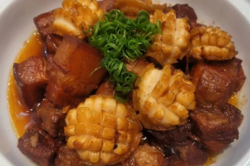 清蒸鱖魚、蒜蓉蒸扇貝、紅燒肥腸